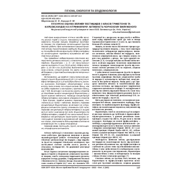 «Вістник проблем біології і медицини» Випуск 1 (163), 2022 рік , 107-112 сторінки, код УДК 632.95:631.445.4
