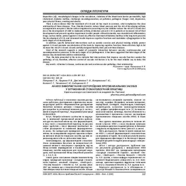 - Petrova TA, Deviatkina TO, Ostrovska HIu, Kolot EH, Liakhovska NV, Deviatkina NM. Analiz rezultativ vykorystannia nenarkotychnykh analhetykiv v khirurhichnii stomatolohii. V: Suchasni aspekty klinichnoi farmakolohii na tli dosiahnen dokazovoi medytsyny: materialy IKh Vseukrainskoi naukovo-praktychnoi konferentsii z mizhnarodnoiu uchastiu; 2017 Lystopad 16-17; Vinnytsia. Vinnytsia; 2017. s. 91-100. [in Ukrainian].