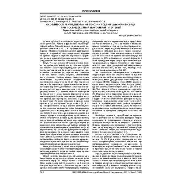 ОСОБЛИВОСТІ РЕМОДЕЛЮВАННЯ ВЕНОЗНИХ СУДИН ШЛУНОЧКІВ СЕРЦЯ ПРИ ПОСТРЕЗЕКЦІЙНІЙ ПОРТАЛЬНІЙ ГІПЕРТЕНЗІЇ